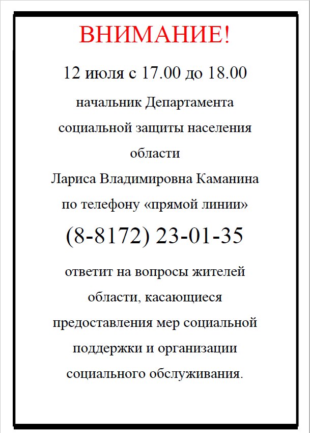 С 12 часов 00 минут до 20 часов 00 минут по местному времени уполномоченные лица органов исполнительной государственной власти и местного самоуправления области проведут личные приемы граждан и обеспечат с согласия заявителей личное обращение в режиме видео-конференц-связи, видеосвязи, аудиосвязи или иных видов связи к уполномоченным лицам иных органов, в компетенцию которых входит решение поставленных в устных обращениях вопросов.